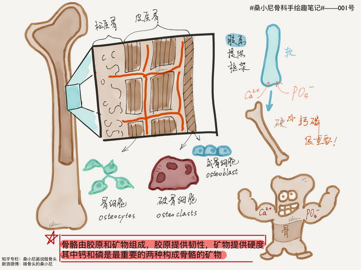 许多中老年女性病人在来门诊看病时,常常会取出她们刚做好的体检报告,指着骨密度检查最下面一行简单的小结:「骨量下降/轻度骨质疏松」,忧心忡忡地对我说: 医生,我检查出来骨质疏松了,是不是要开始补钙了? 其实不光是骨质疏松,孩子想长高,骨折想快快恢复,没什么是一盒牛奶一瓶钙片解决不了的,如果解决不了,那就两盒两瓶…… 可其实人不是钙的容器,不是吃进去的钙都会沉积到骨头里,想要高效补钙