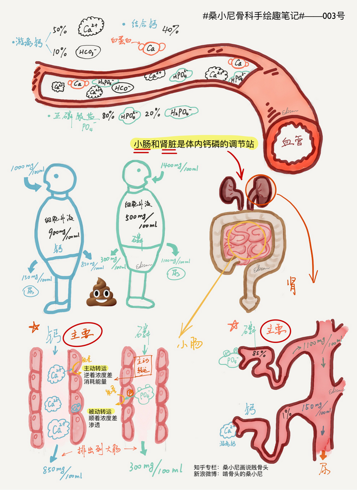 身体里大部分的钙和磷是以游离的形态在血管和细胞之间流浪,来维持我们日常的生理功能和活动所需。