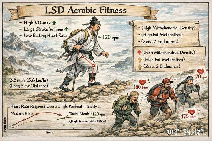 若说内功深厚,不过是对身体能量系统的长期驯化。多年来调息导引,使得他脂代谢能力远胜常人。普通人行山,多以糖原为主燃料,一旦耗尽,便有“撞墙”之虞,头昏目眩,判断失误。而脂代谢效率高者,能在低强度区间长时间维持稳定输出。