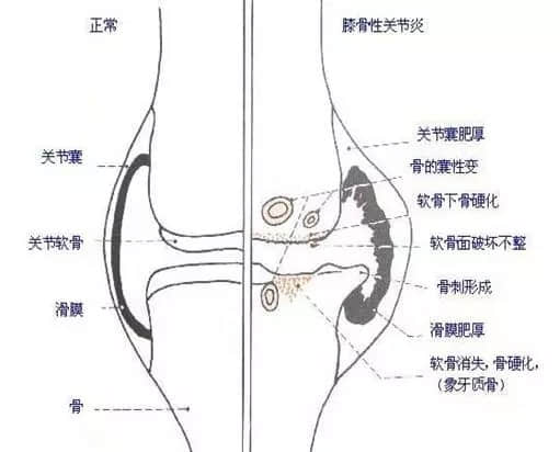 正常人的膝关节内都有一层软骨垫,它有着缓冲、润滑的保护作用。随着年龄的增大,很多人关节内的这层保护垫就会逐渐的磨损、脱落。一旦这层软骨衬垫磨没了,就无法再生,这就好比牙齿掉了,吃什么药都不可能再长出新牙。当关节表面软骨大量磨损、退变时,膝关节活动时就是骨头磨骨头,人就会出现关节不稳、长骨刺、上下楼疼痛等症状。